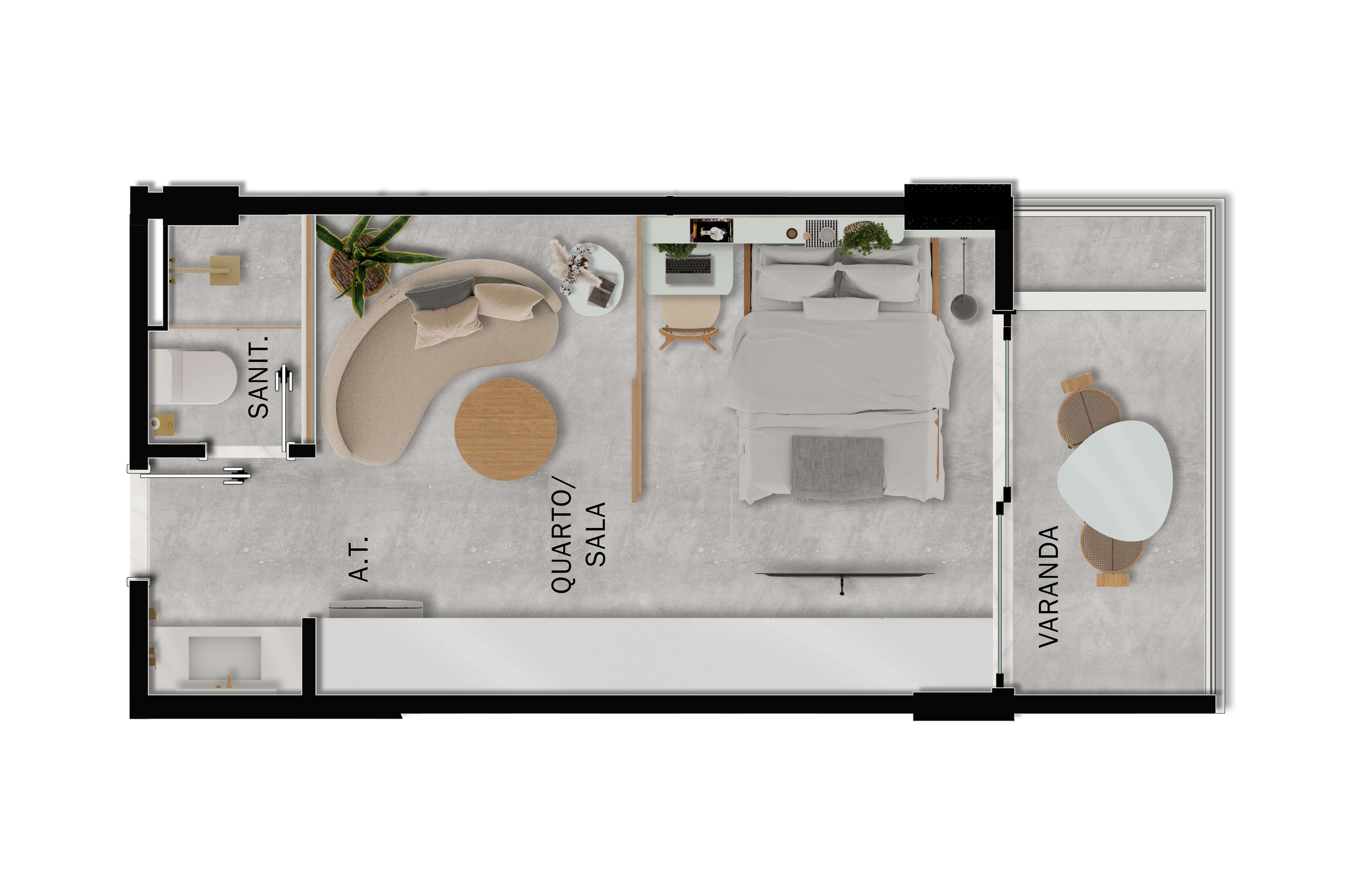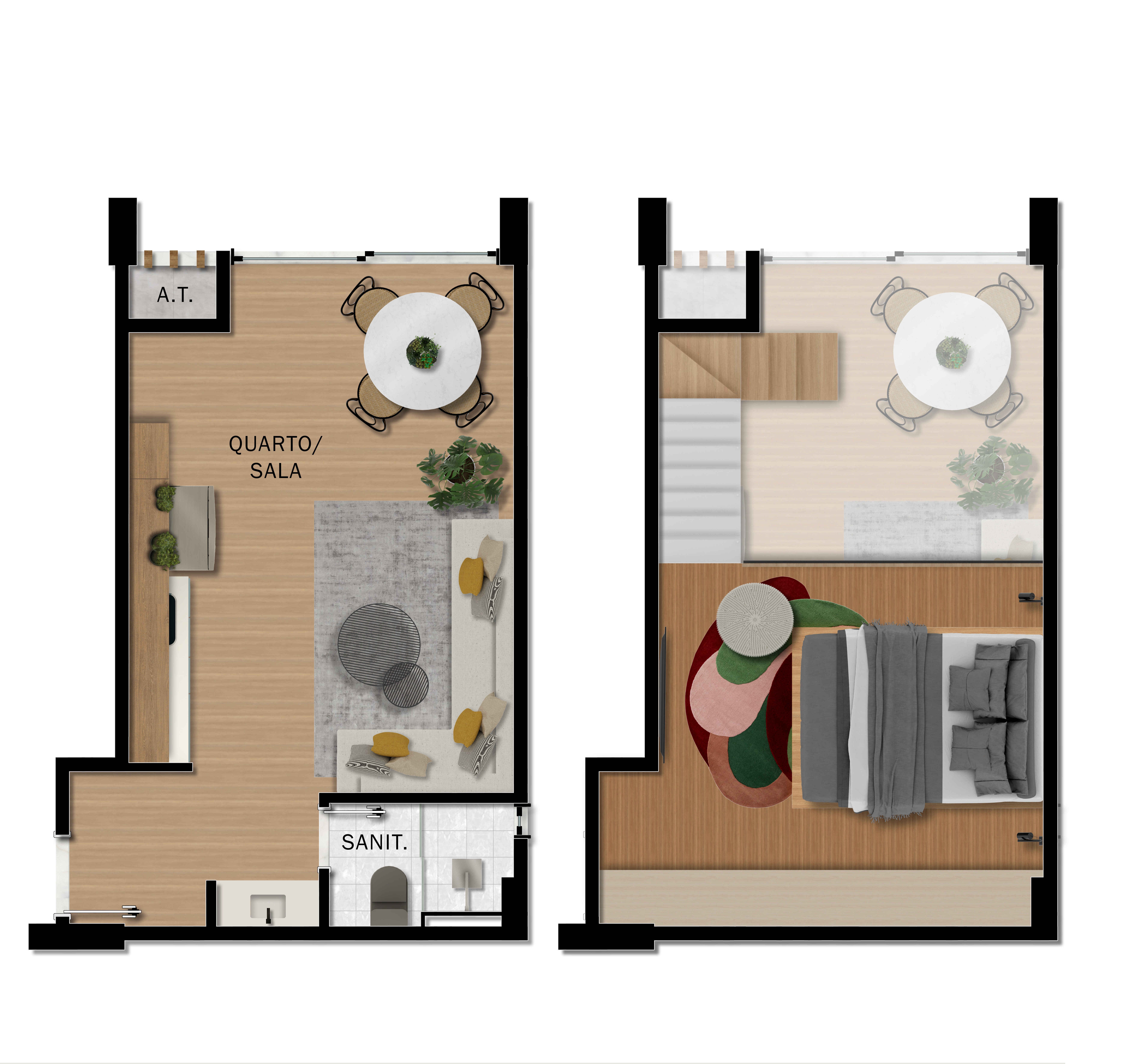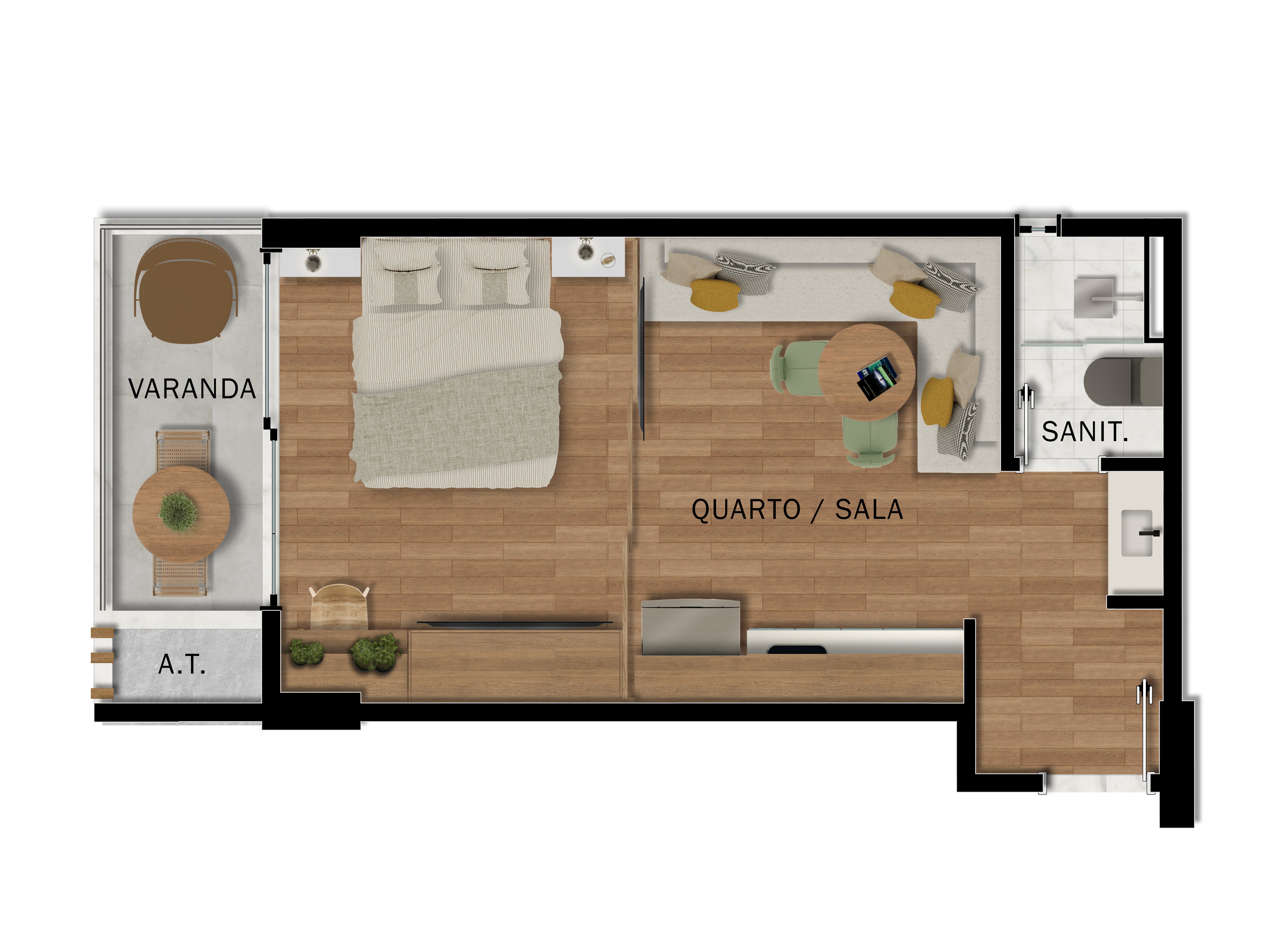 • Quarto e salas versáteis
